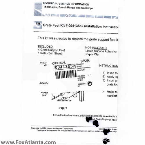Range Burner Grate Foot Pad Kit. Contains rubber pads that fit the bottom of the burner grates to prevent cooktop scratches.