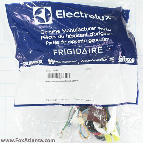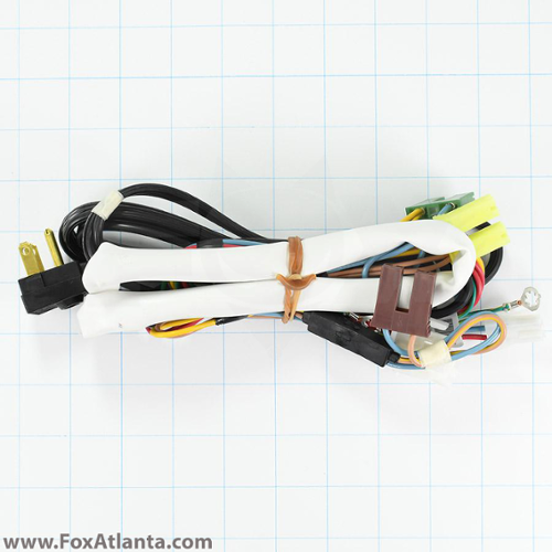 A wire harness supplies power to electrical components in the refrigerator.