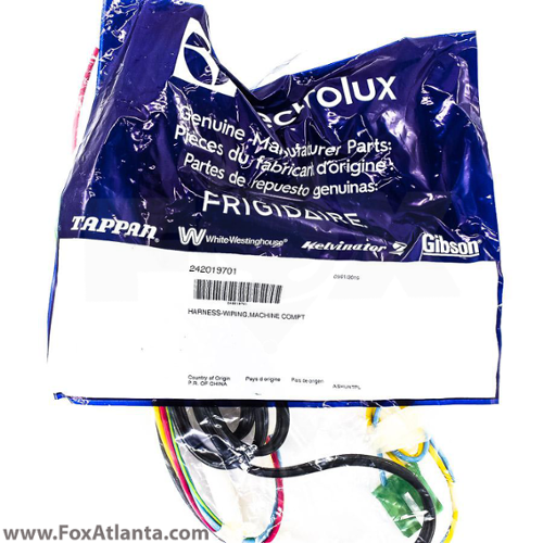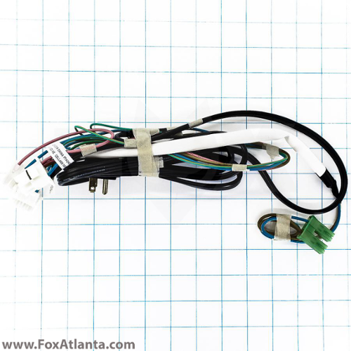 Refrigerator power cord wire harness supplies power to electrical components in the refrigerator.