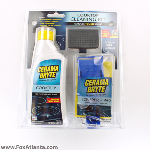 Great for all cooktops. 24oz Cooktop Cleaning kit w/scraper and pads.