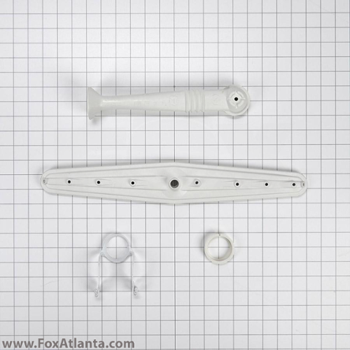 Dishwasher middle spray arm water supply tube and arm kit. Manifold and spray arm assembly includes the spray arm that rotates and sprays water and the manifold tube that carries water to the spray arm.